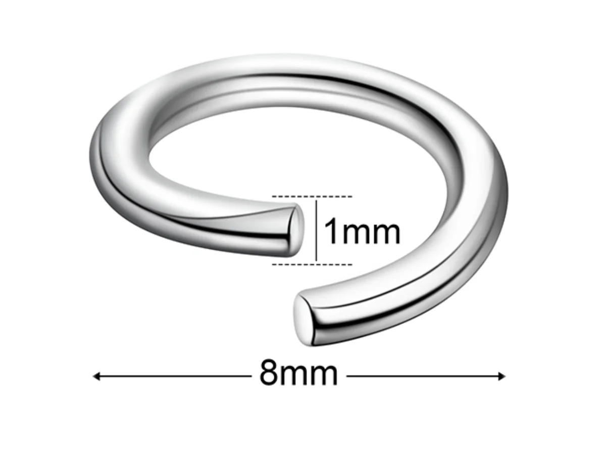 Anillas 8mm acero inox 100 uds perfectas para una variedad de proyectos de manualidades y joyería.