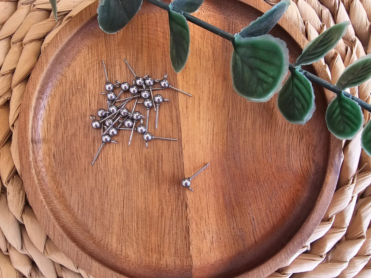 Pendiente redondo con perno acero inox de 4 mm, diseñados con una anilla en posición horizontal, perfecta para crear pendientes personalizados. La anilla está alineada de manera que permite añadir dijes, cuentas u otros elementos decorativos de forma fácil y segura. El acero inoxidable garantiza durabilidad, resistencia a la corrosión y un acabado brillante.