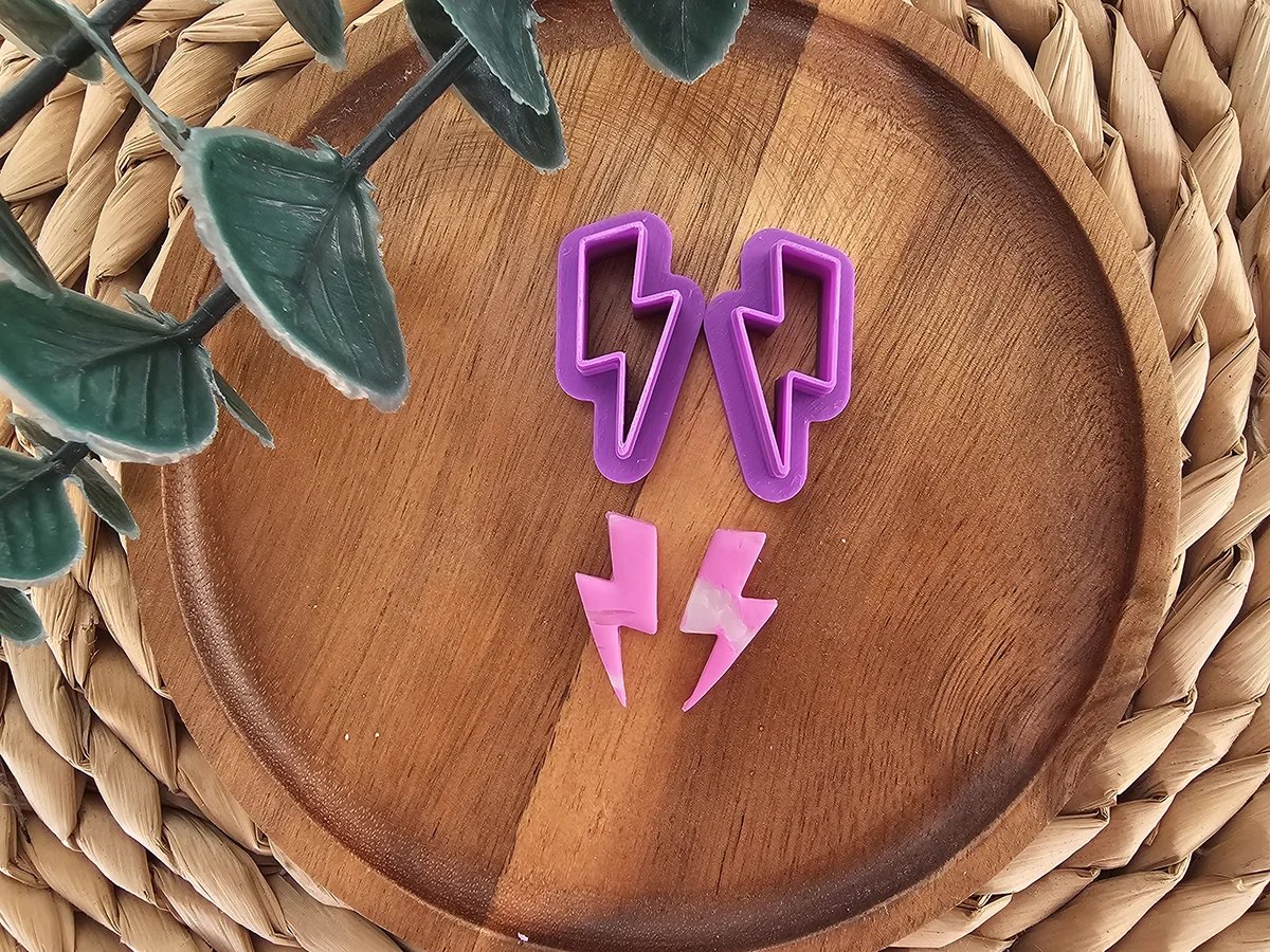 Cortador Rayo para arcilla polimérica con diseño de rayo en efecto espejo, disponible en tamaños desde 15 mm hasta 55 mm. La variedad de tamaños permite adaptarse a distintos proyectos, creando piezas versátiles y llenas de energía, perfectas para quienes buscan un look electrizante y único.