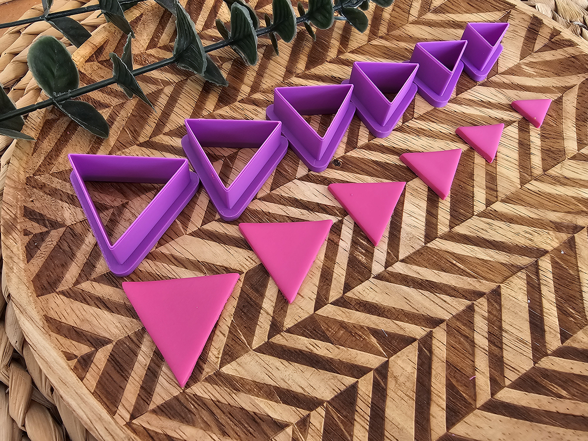 Cortador Triángulo para Arcilla Polimérica. Este cortador es una herramienta esencial para trabajar con arcilla polimérica. Disponible en varios tamaños que van desde 15 mm hasta 40 mm.