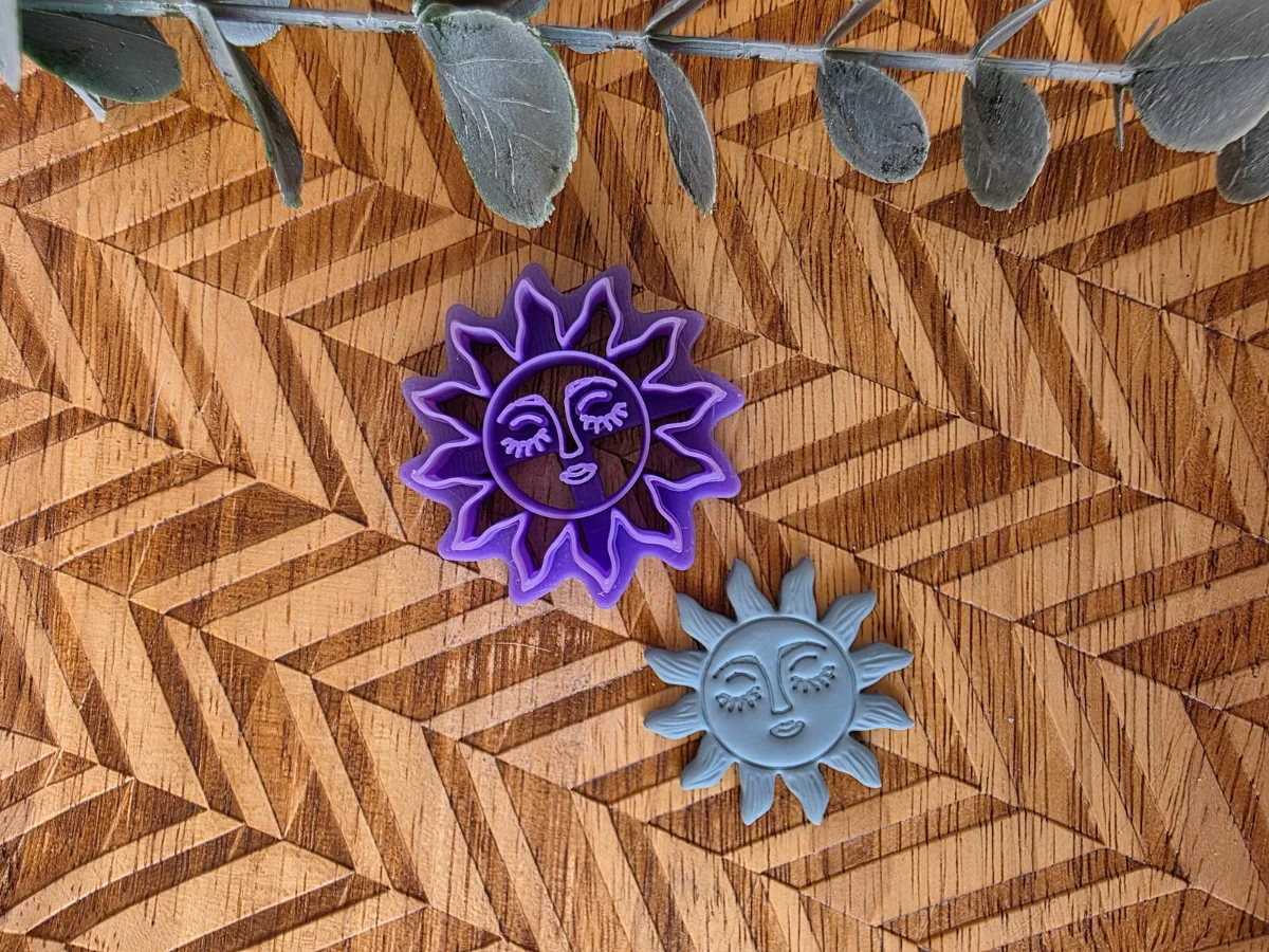 Cortador Sol Místico. Agrega un estilo único y espiritual a tus creaciones con nuestro cortador. Diseñado especialmente para trabajar con arcilla polimérica, este cortador te permitirá crear piezas con detalles definidos y un acabado profesional.