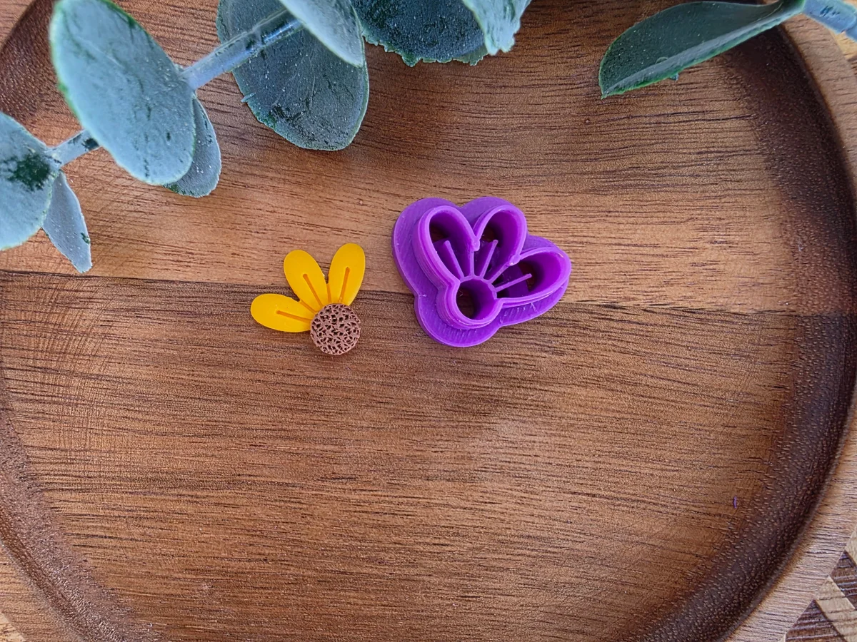 Cortador Media Flor 3 pétalos: Este cortador está diseñado especialmente para trabajar con arcilla polimérica y lograr piezas con estilo propio. Su forma sencilla pero elegante es perfecta para crear pendientes, colgantes, charms o detalles decorativos. Al ser una base limpia y definida, te permite añadir texturas, relieves o colores a tu gusto.
