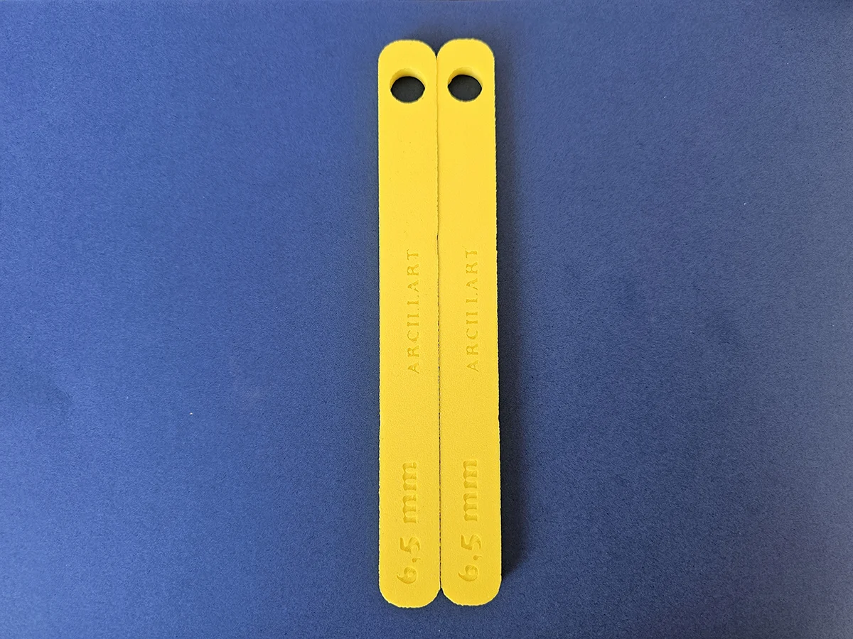 Con una medida exacta de 6.5mm, esta guía proporciona una precisión milimétrica, asegurando que cada lámina de arcilla tenga el grosor perfecto.