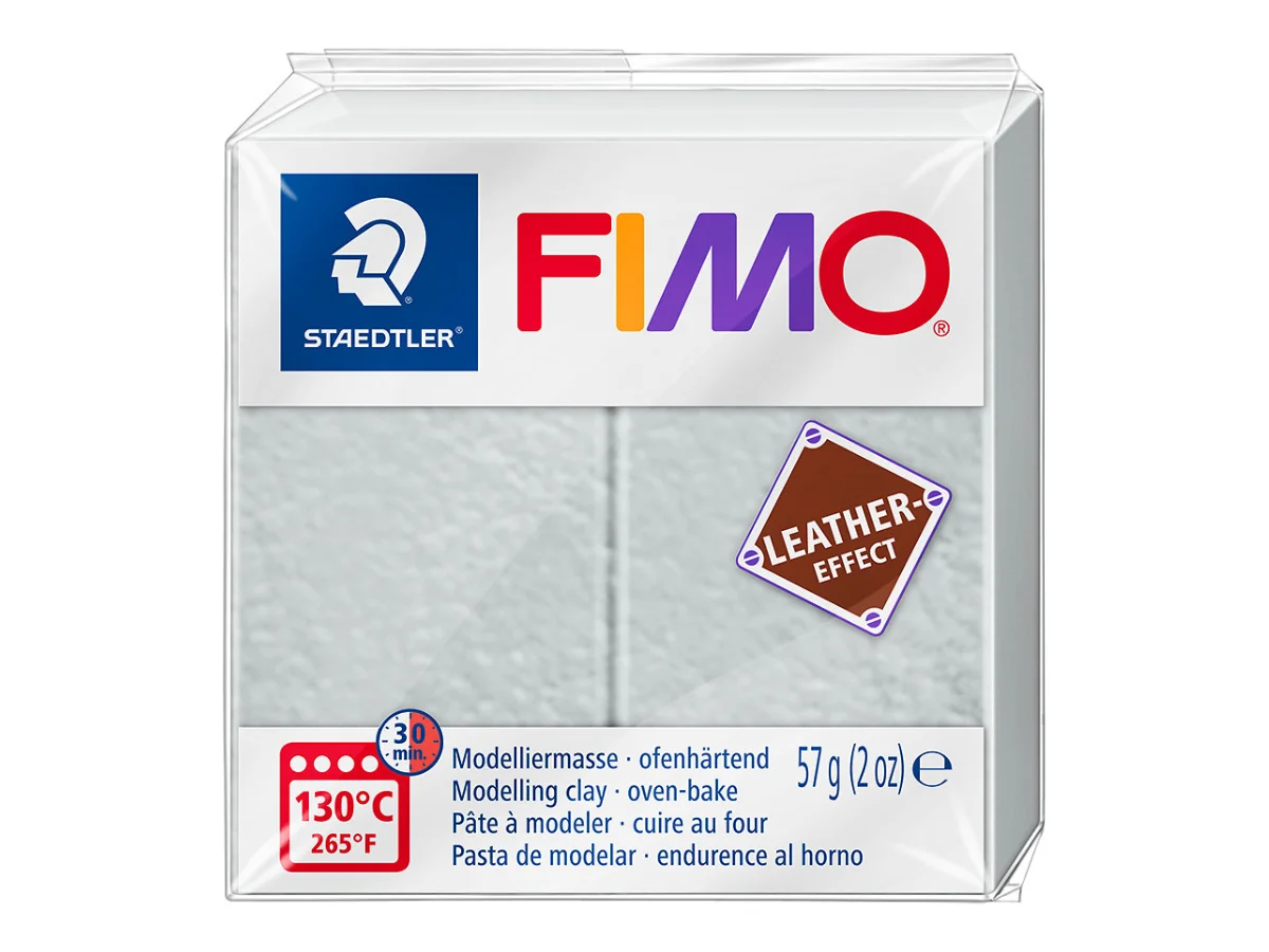 Fimo Leather Effect Gris Paloma es una arcilla polimérica que imita la apariencia y textura del cuero en un elegante color gris paloma. Ideal para crear joyería, accesorios y decoraciones, esta arcilla se distingue por su flexibilidad y resistencia tras el horneado.