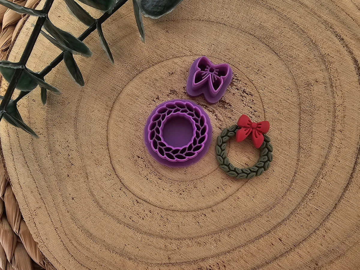 Cortador Corona Navideña para arcilla polimérica. Crea piezas encantadoras con este cortador de diseño navideño, acompañado de un elegante lazo añade un toque especial.