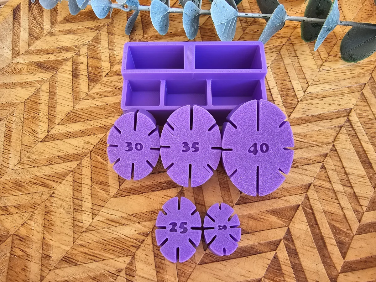 El pack guías para aros ovalados ofrece medidas desde 20 mm hasta 40 mm, diseñadas para ayudarte a cortar arcilla polimérica con total precisión y simetría.