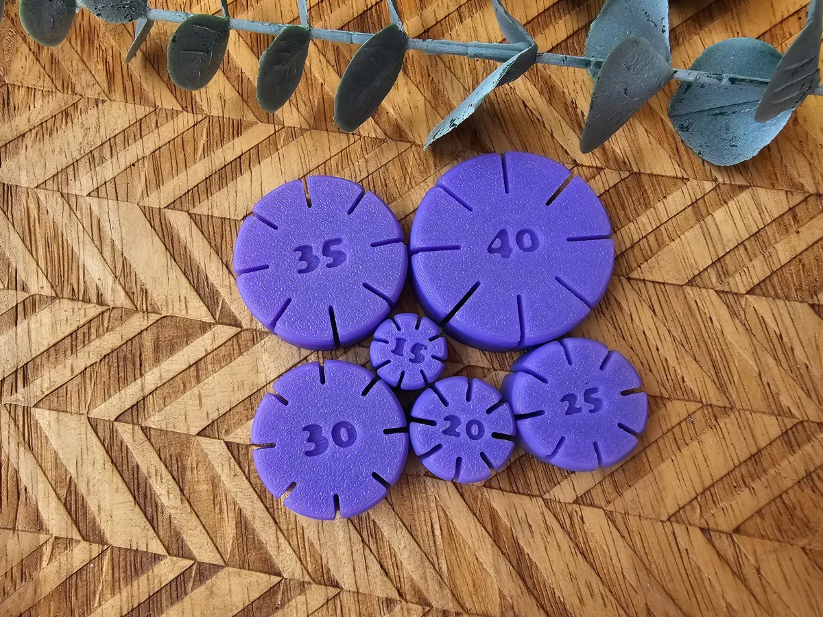 Nuestro pack guías para aros incluye distintas medidas desde 15 mm hasta 40 mm, perfectas para cortar y dar forma a aros redondos con arcilla polimérica de manera rápida, sencilla y con resultados uniformes.