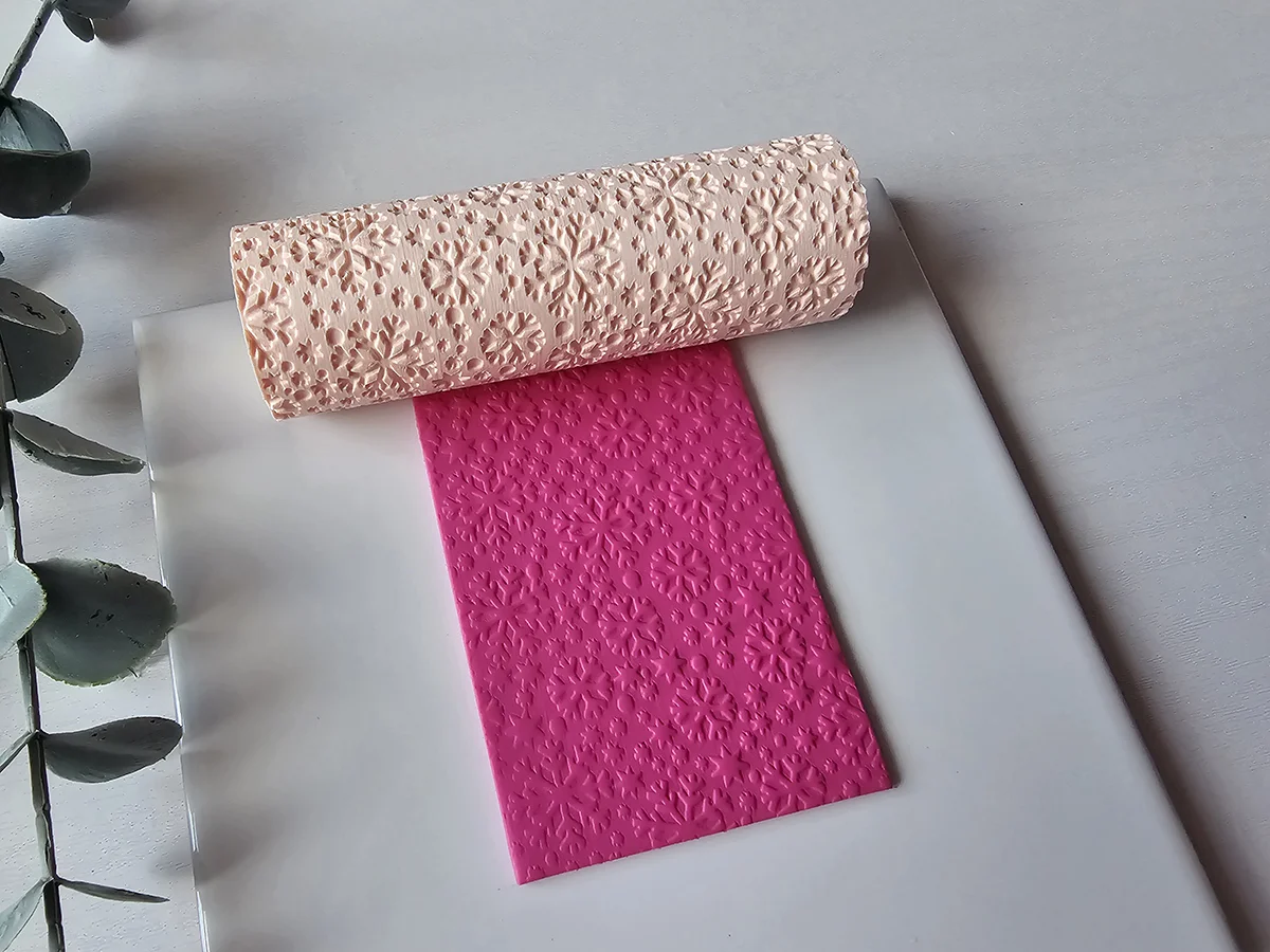 Rodillo Textura Copos y Estrellas para arcilla polimérica con un encantador diseño de copos de nieve y estrellas, ideal para dar un acabado festivo y detallado a tus creaciones. Este rodillo es perfecto para crear fondos y texturas únicas en joyería, adornos navideños y decoraciones de invierno.