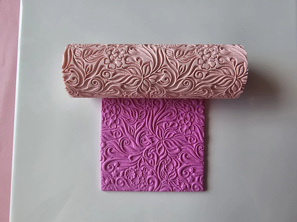 Rodillo Textura Flores y Plantas especialmente diseñado para dar textura a la arcilla polimérica, ideal para crear patrones únicos y detallados en tus proyectos de arte.