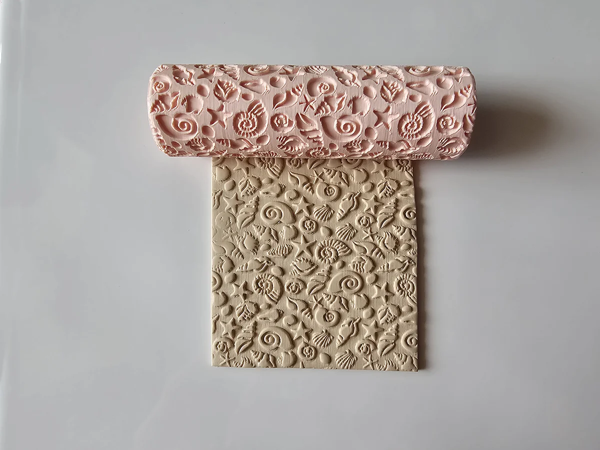 Rodillo textura marina: Conchas, caracolas y estrellas de mar grabadas para crear diseños inspirados en el océano. Perfecto para arcilla.