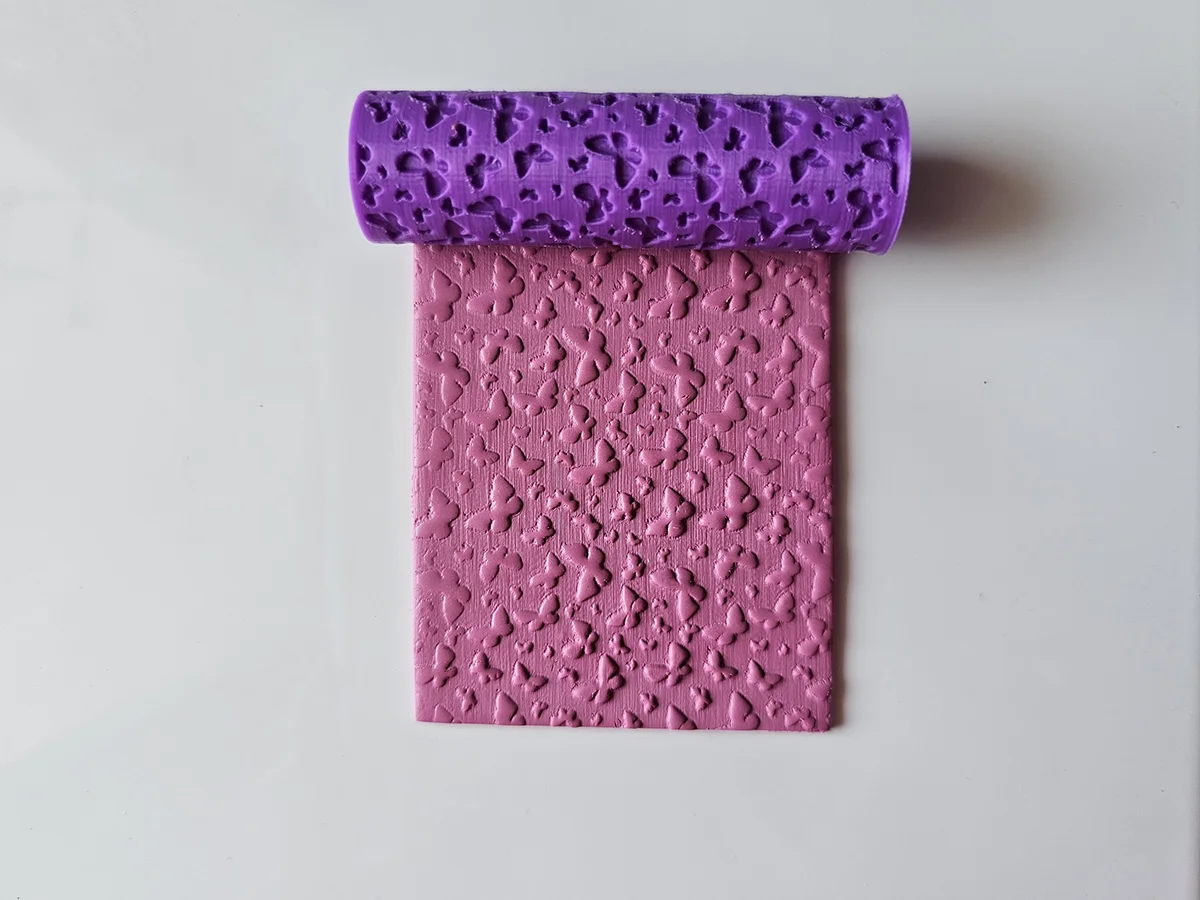 Rodillo textura mariposas especialmente diseñado para dar textura a la arcilla polimérica, ideal para crear patrones únicos y detallados en tus proyectos de arte