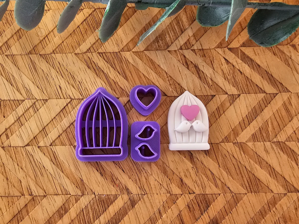El cortador Nido de Amor está diseñado para crear pendientes llenos de simbolismo y dulzura. Su diseño representa una jaula decorativa que alberga dos pajaritos y un corazón central, evocando la idea de hogar, compañía y amor compartido.