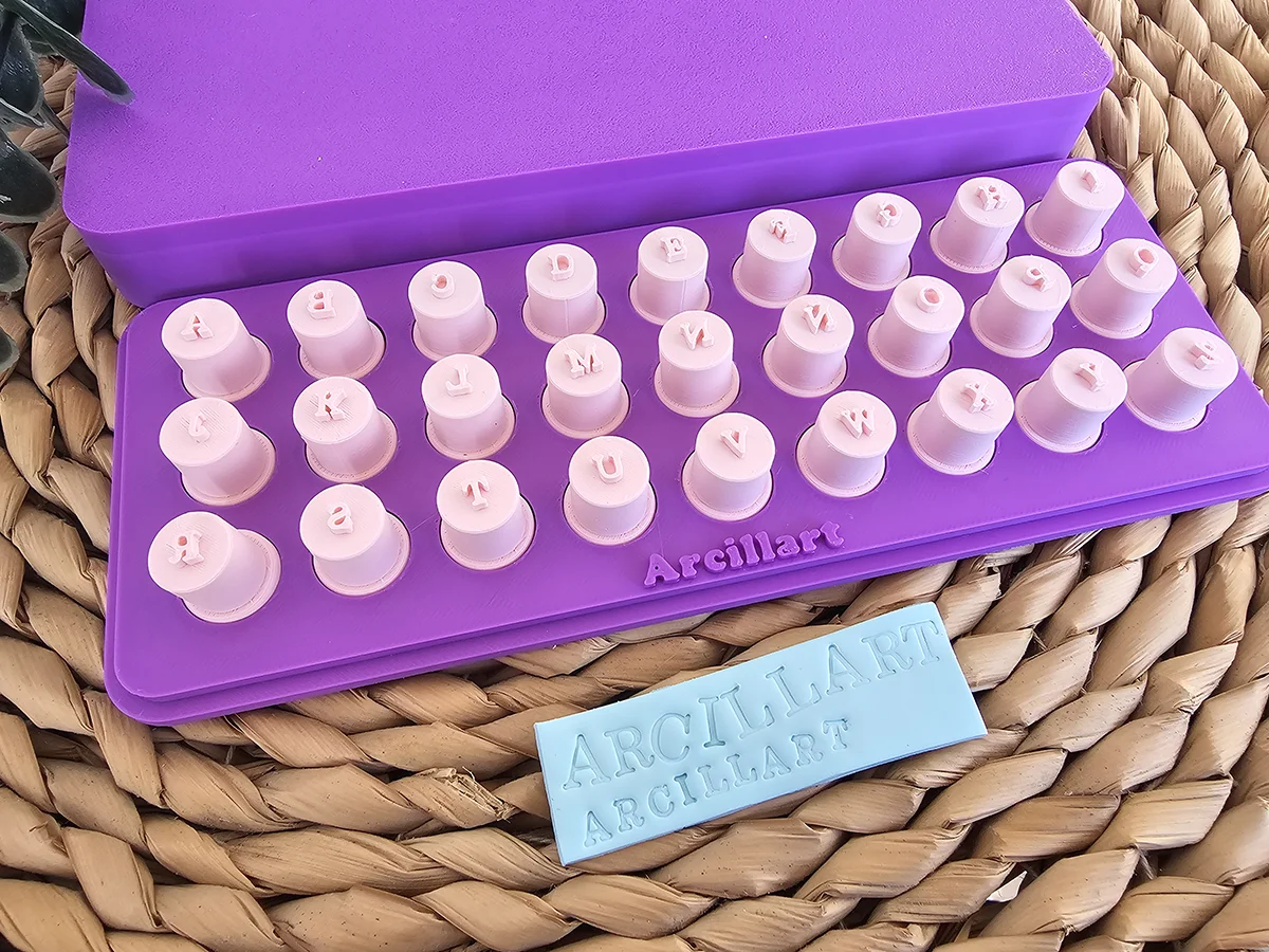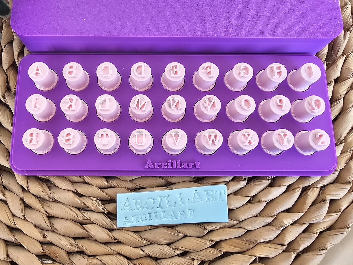 Juego de sellos de abecedario en mayúsculas disponible en dos medidas: 4,55 mm y 7 mm. Cada sello tiene forma redonda para facilitar su manejo y cuenta con la altura ideal para evitar dejar marcas de los dedos en la arcilla. Incluye una caja organizadora donde cada sello tiene su propio espacio, manteniéndolos ordenados y listos para su uso en tus proyectos creativos.
