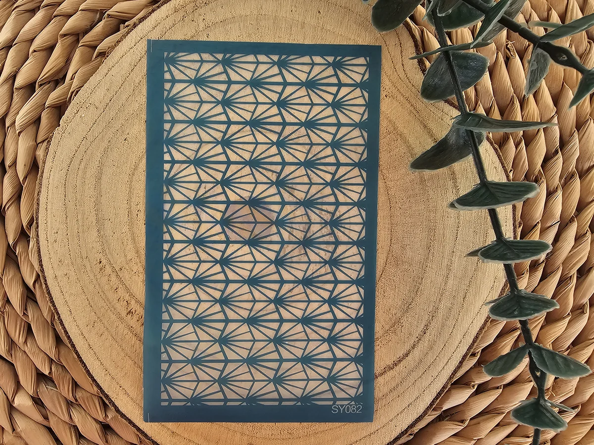 Silk screen Geometría Estelar presenta un diseño geométrico de estrellas conectadas, ideal para agregar un toque moderno y detallado a tus proyectos en arcilla polimérica. Su patrón repetitivo crea una textura dinámica y elegante, perfecta para piezas decorativas y accesorios